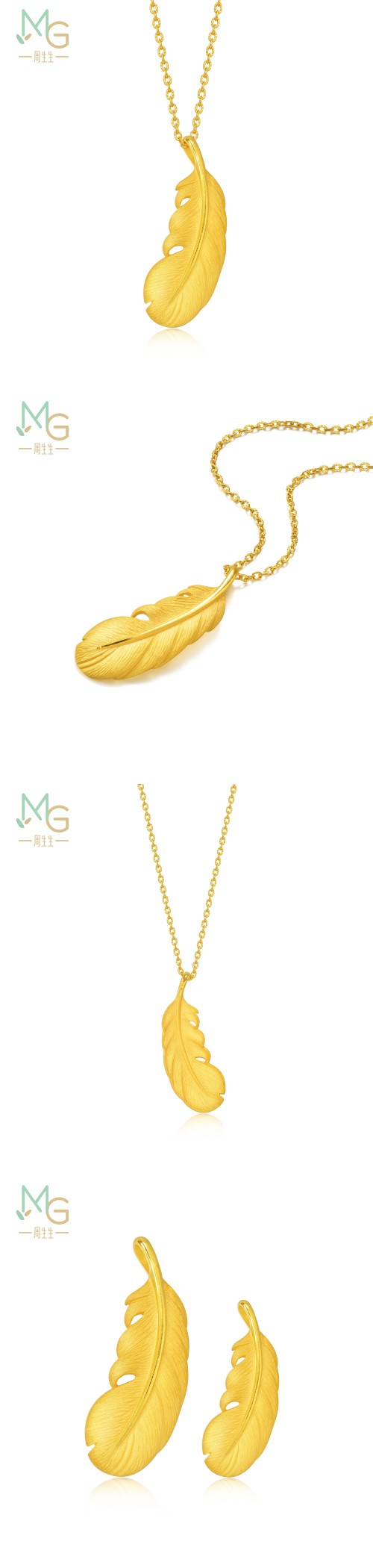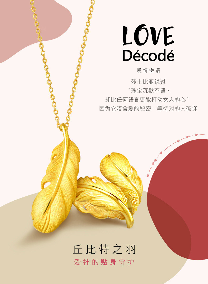 圣诞礼物周生生黄金羽毛吊坠爱情密语黄金挂坠不含项链女